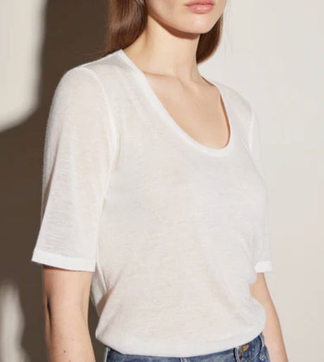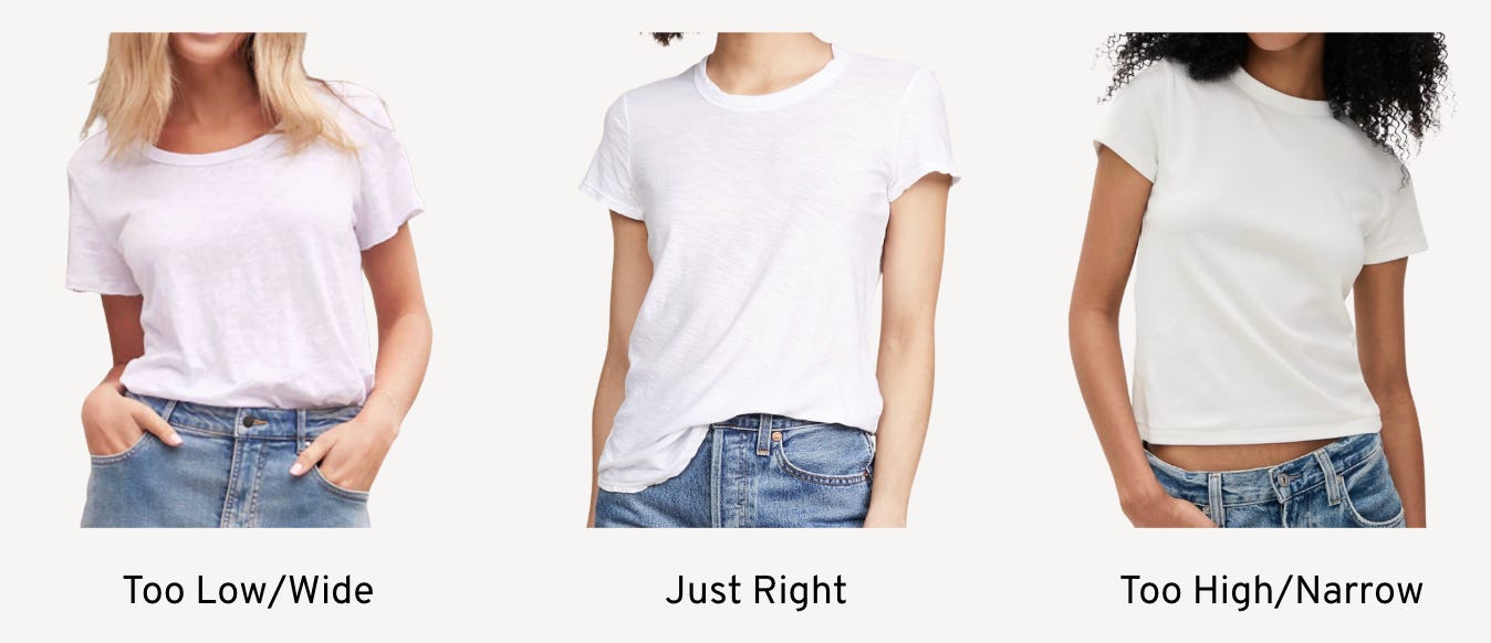 Sticking with the t-shirt example, let’s say you wanted an open neckline, rather than the first option above that’s kind of in-between, I’d rather you go this direction which feels more intentional and has a stronger POV. If you want an open neckline, commit to that open neckline!
