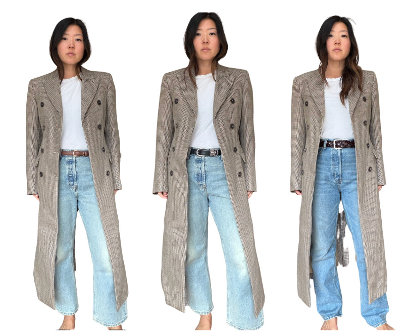 visual examples - I styled different belts to show how they look on me depending on the type of jeans or pants I’m wearing