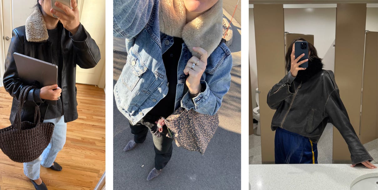 Repurpose a shearling or fur collar and add to any jacket - We all probably have one attached to an old coat or vintage jacket. I find that sometimes the garment it originally came attached to isn’t exactly how we want to wear it but it could be perfect for another piece!