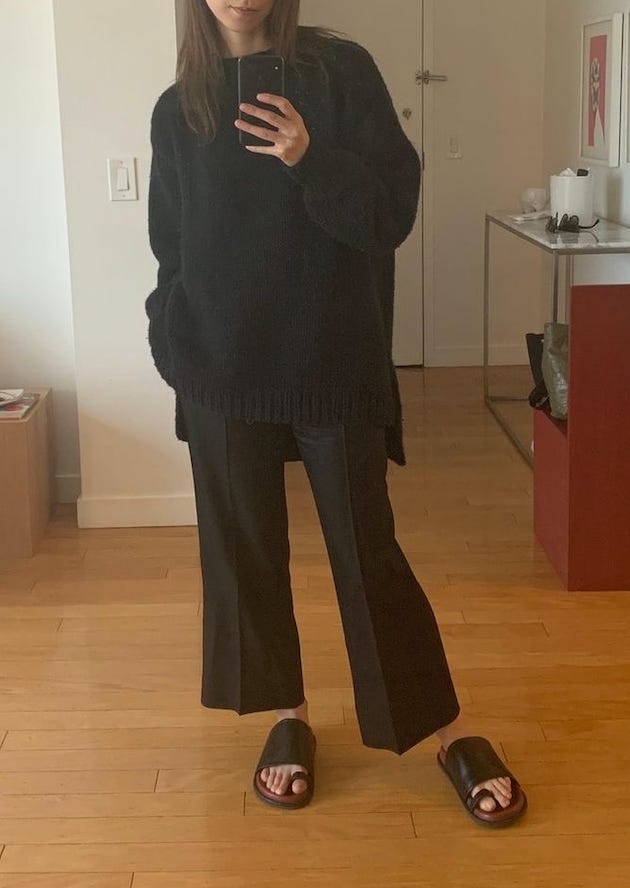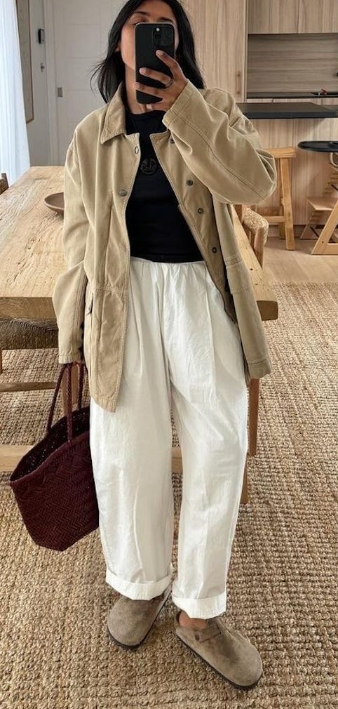 Similar to the 2+2 lounge/polished formula I shared last week from my Zoë Kravitz style deep dive, I think putting on one thing that feels polished and a bit structured helps put your “I’m working and I’m ready to be productive” hat on.