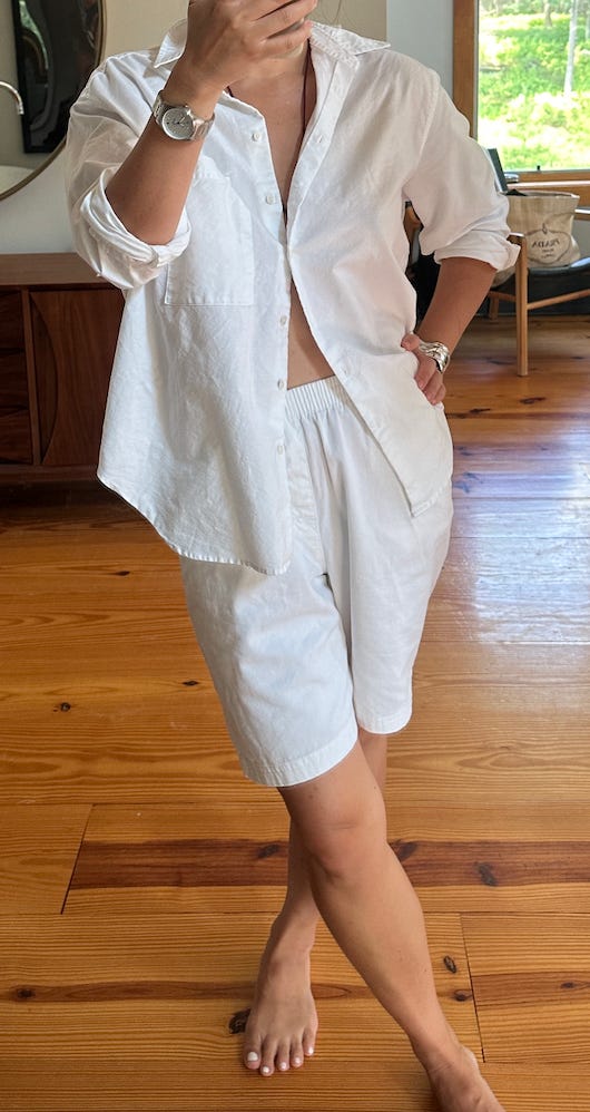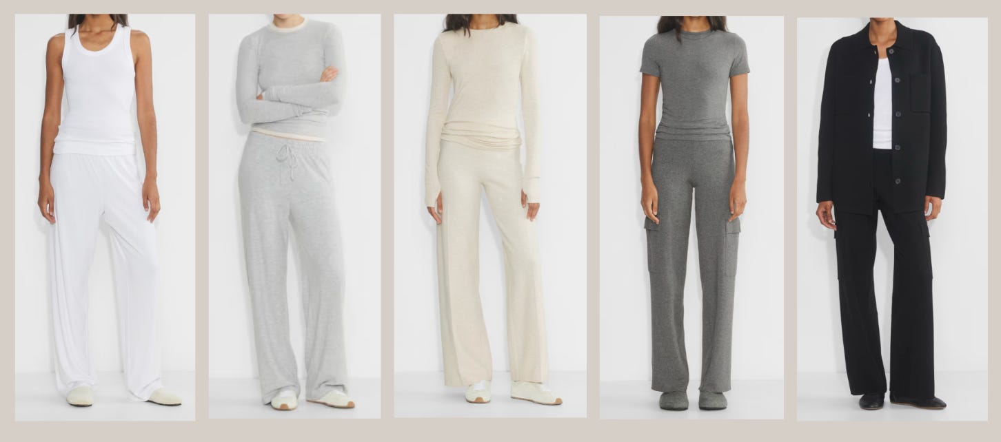 This to me just means a non-athleisure or lounge set. They have a bit more construction, shape, and movement and include wovens. What I like about elevated sets vs athleisure is they can fit much more seamlessly into the rest of your wardrobe while still staying comfortable and cozy.