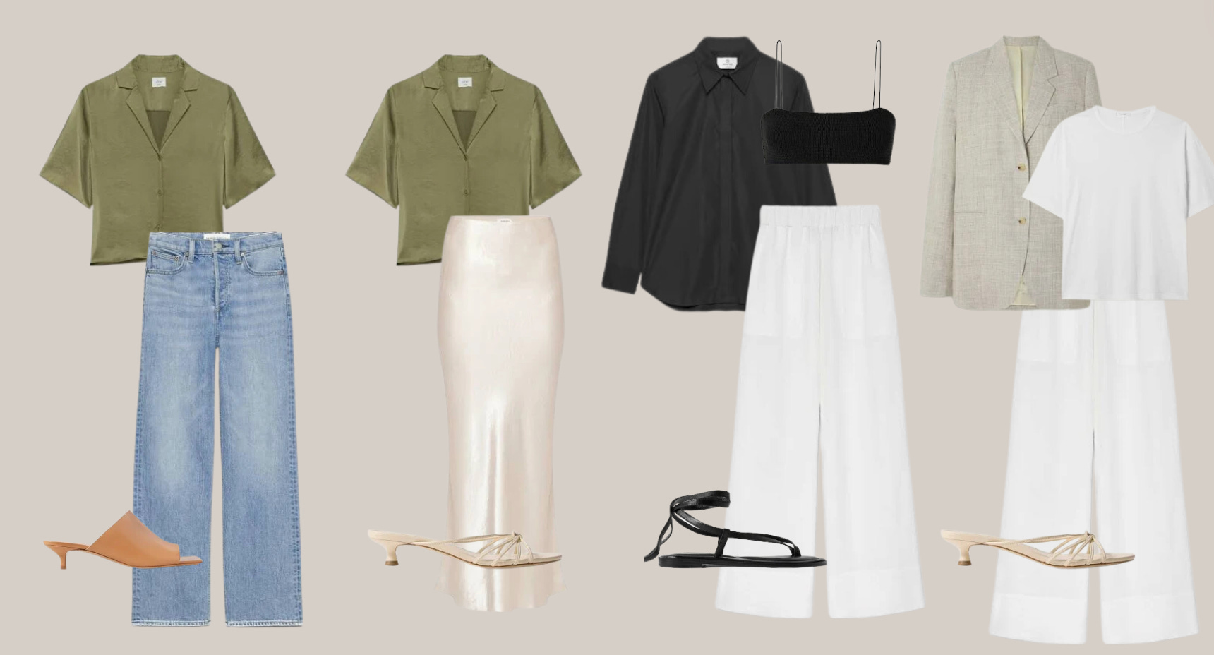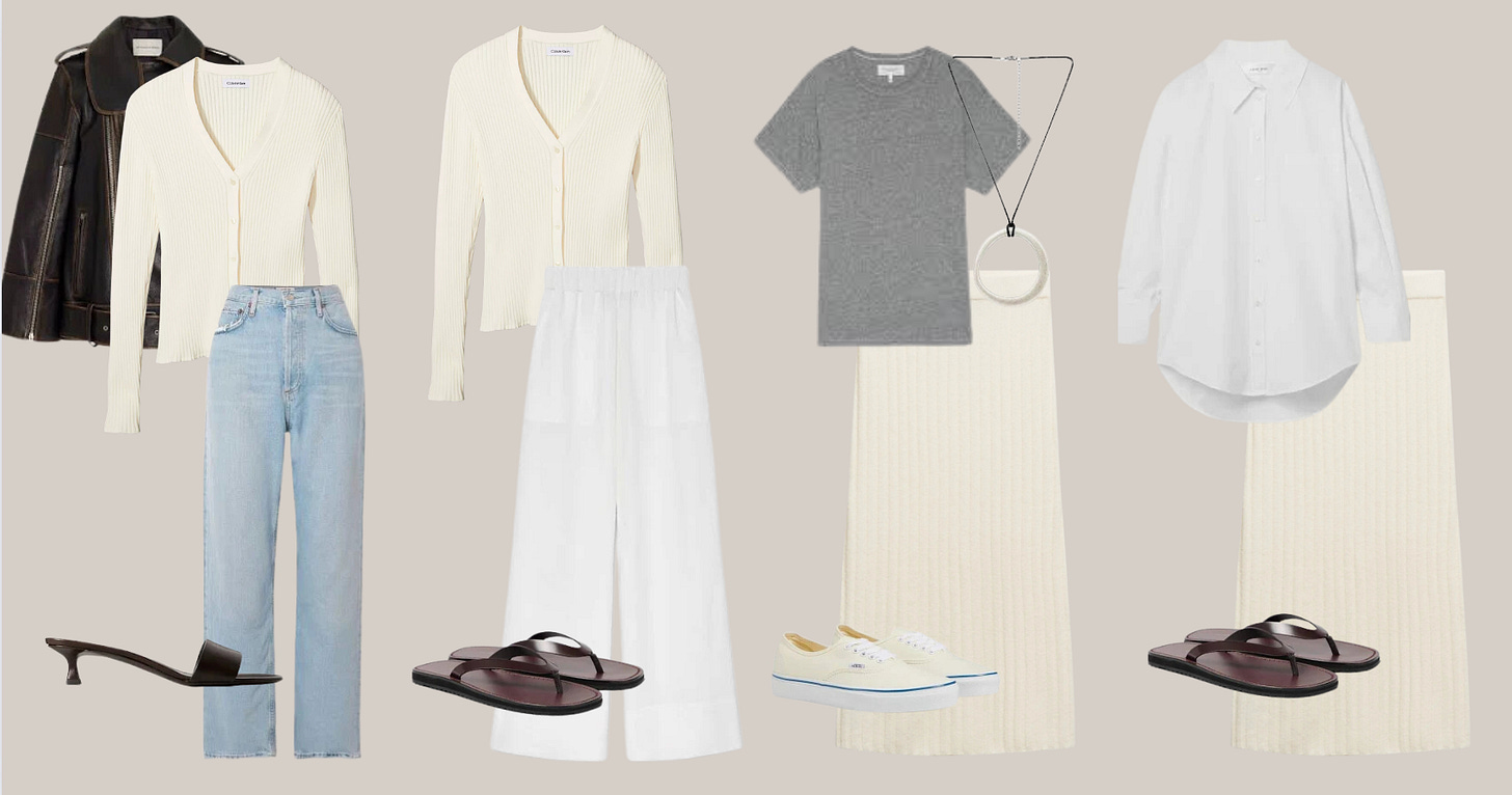 When you have these clean pieces, you can mix-n-match with each other like the above examples but also back to your other regular everyday pieces with more ease.